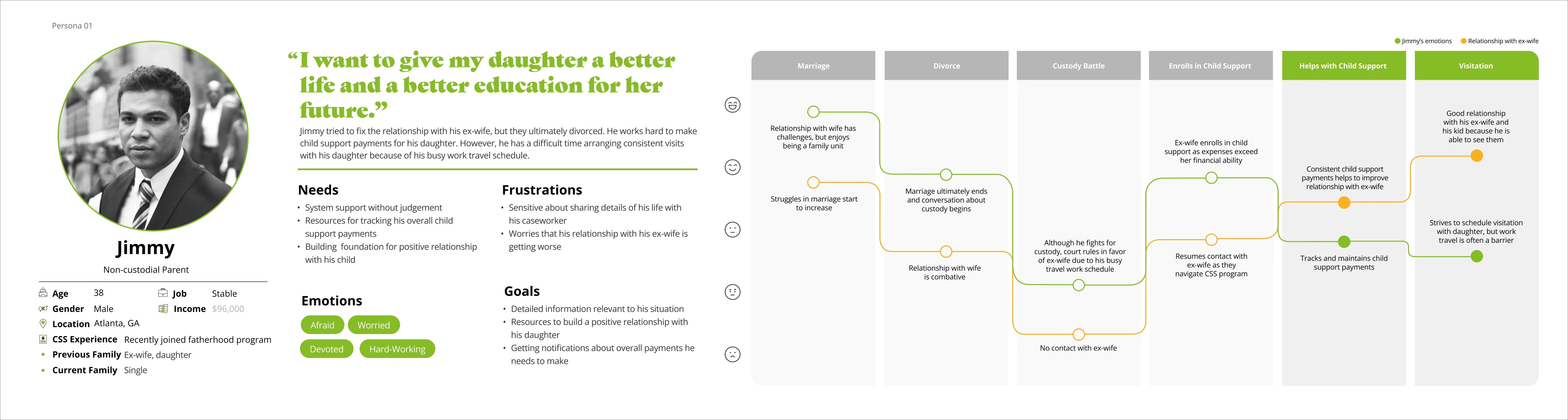 Koyu learned that child support is a complex issue that people who don't understand their situation often criticize, while those in the situation often face judgment. She felt a deeper conviction as a UX/UI designer that having an empathy mindset not only helps people in child support feel understood and supported but also drives meaningful design solutions that foster inclusivity and reduce stigma.