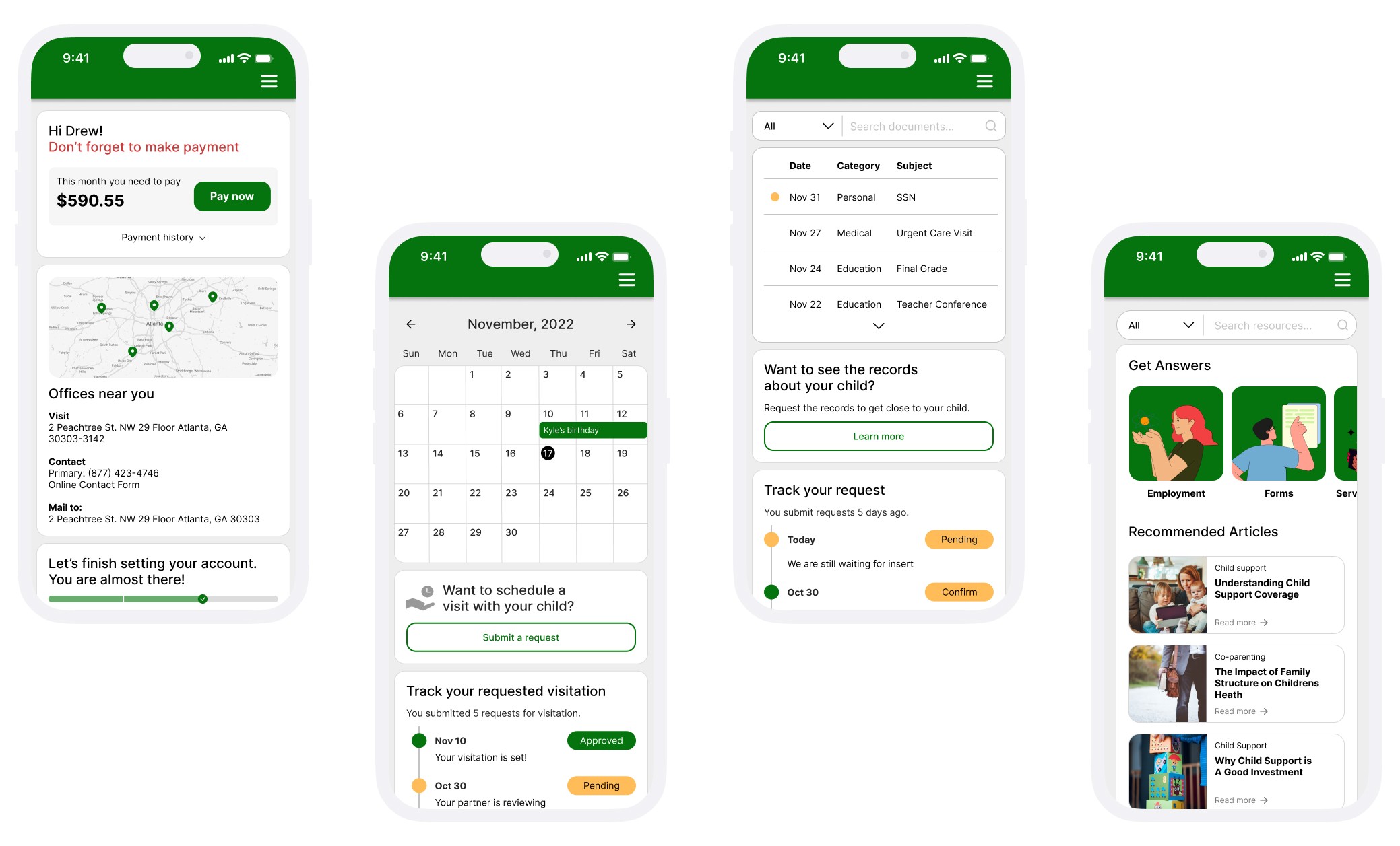 Conducted qualitative and quantitative research and designed a Figma prototype for non-custodial parents