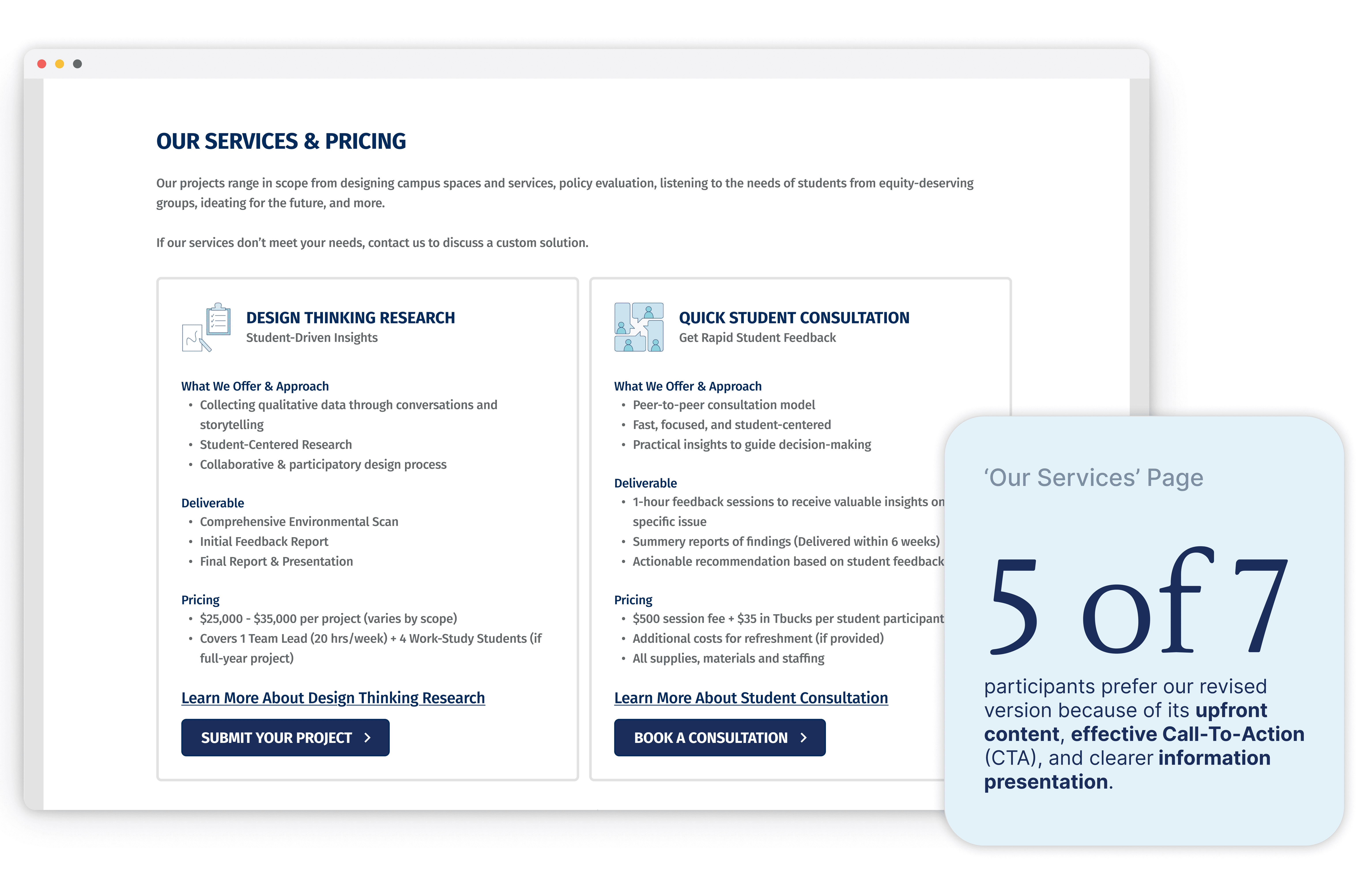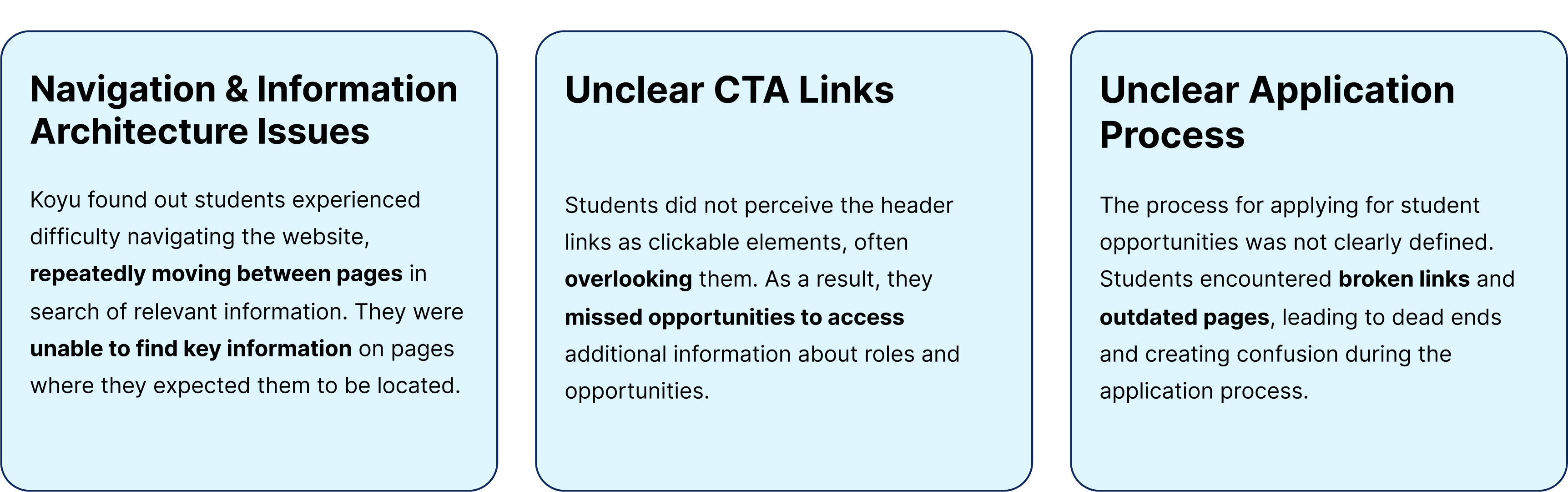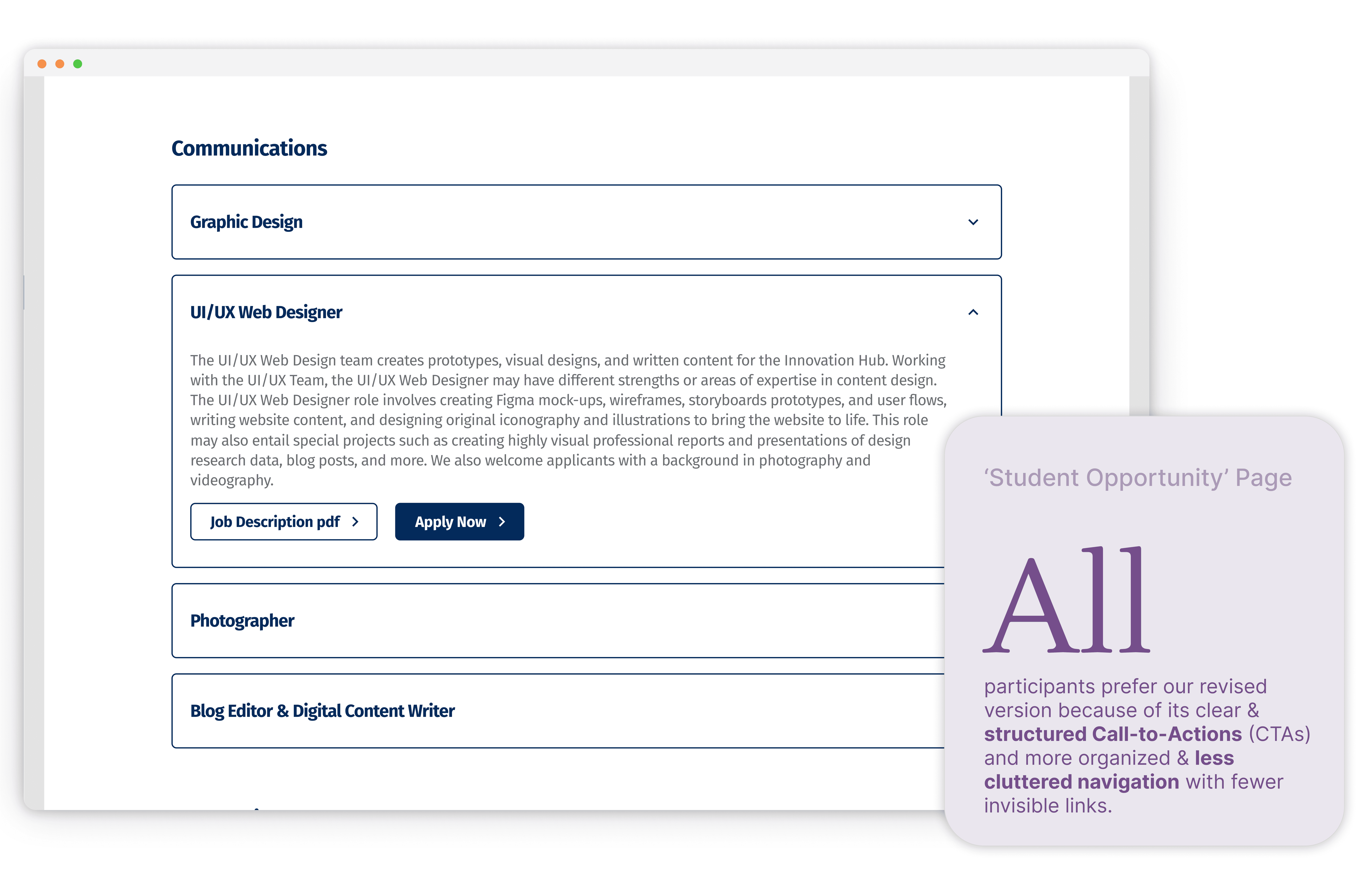 Students and potential partners rely on the Innovation Hub’s website to explore opportunities, apply for work-study positions, and request services. However, poor navigation and unclear communication create friction in the user experience, making it difficult to complete essential tasks.