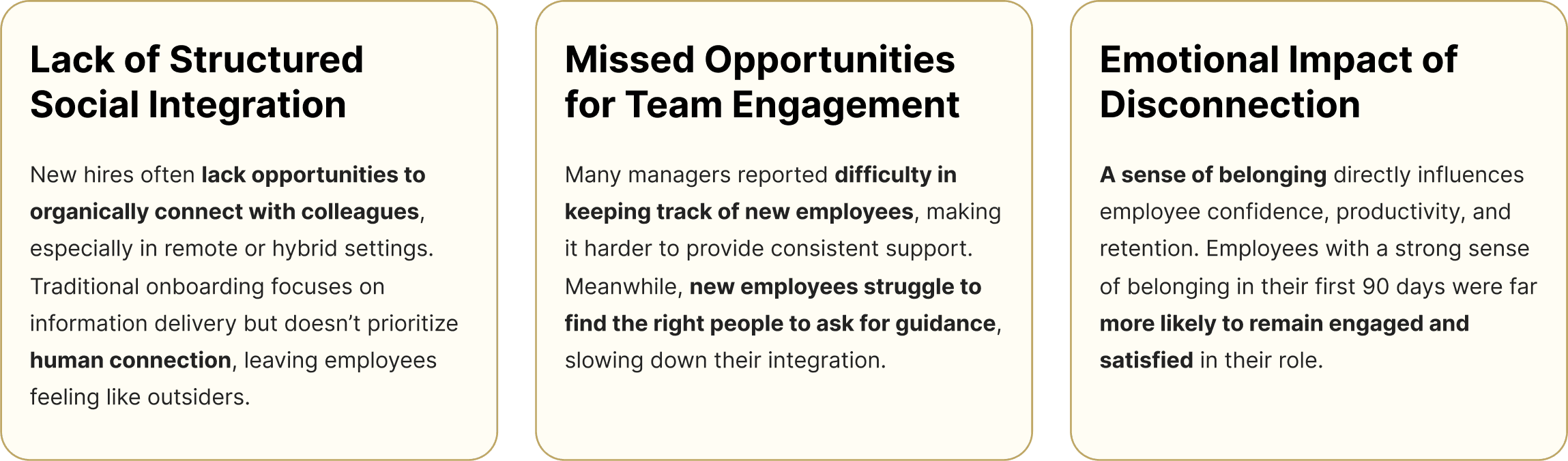 The heavy reliance on individual managers results in varied experiences, leaving some employees feeling supported while others struggle with unclear expectations. Training gaps further complicate the transition, making it difficult for new hires to confidently step into their roles. Inefficient onboarding reduces productivity, increases turnover costs, and weakens company culture. To sustain long-term growth and retention, HR leaders recognize the need for a more cohesive and reliable onboarding strategy.