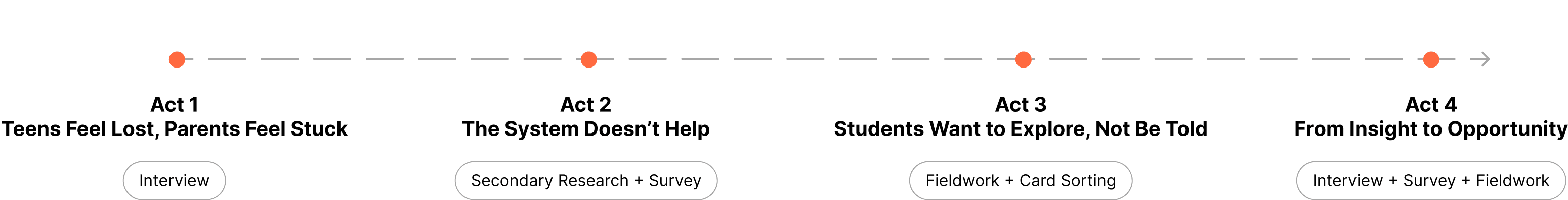 Conducted mixed-method research with public high school students and educators to uncover pain points, emotional needs, and decision-making behaviors related to career planning